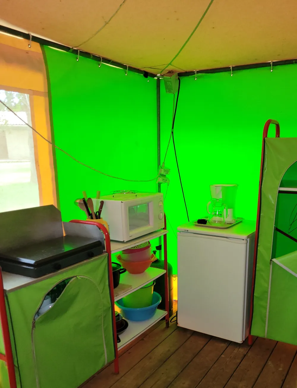 During the reservation process, please select your camping equipment in the options : tent, motorhome, caravan,... If you select the option for the rental of a refrigerator, it is compulsory to also select the electricity option.